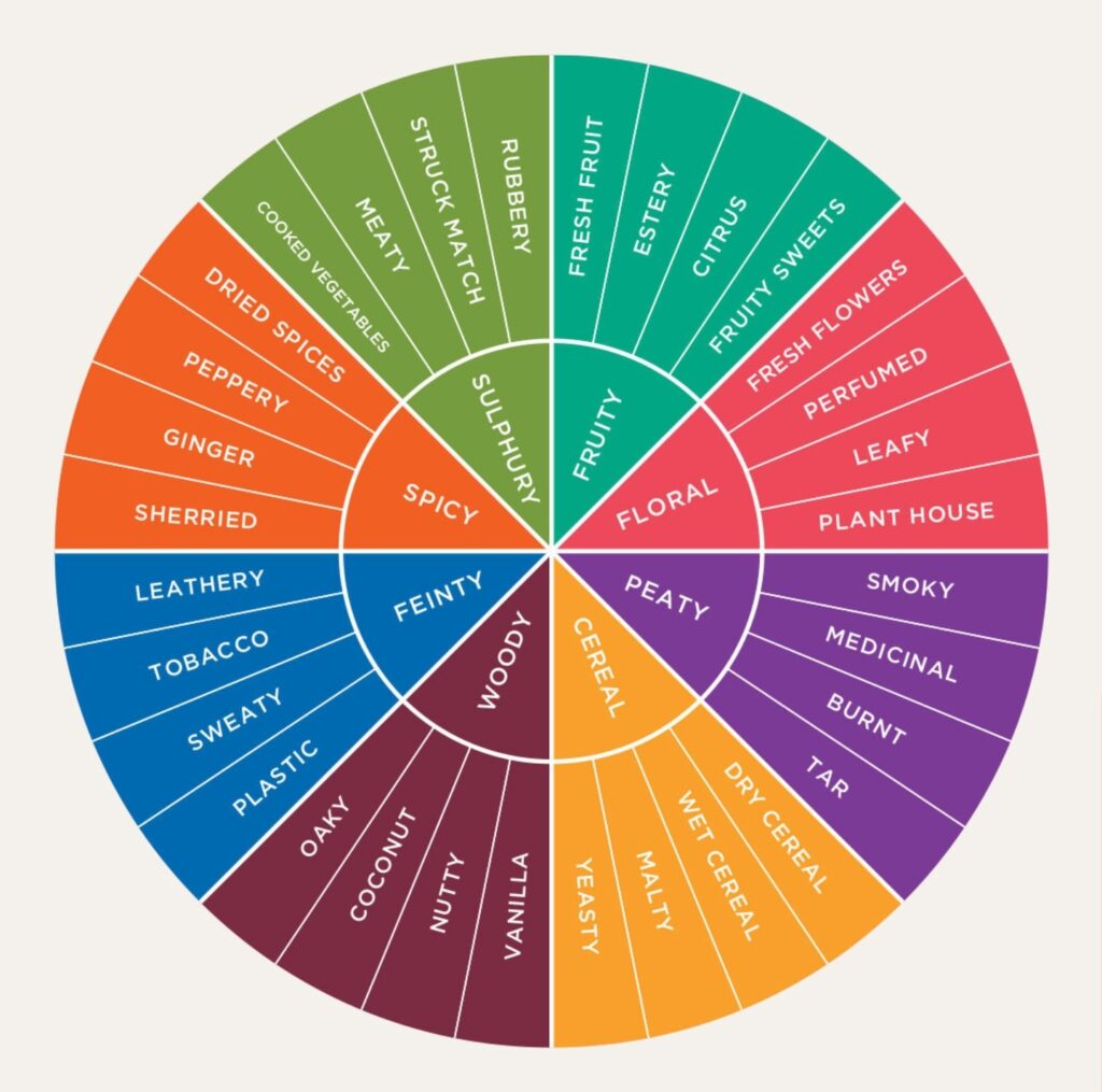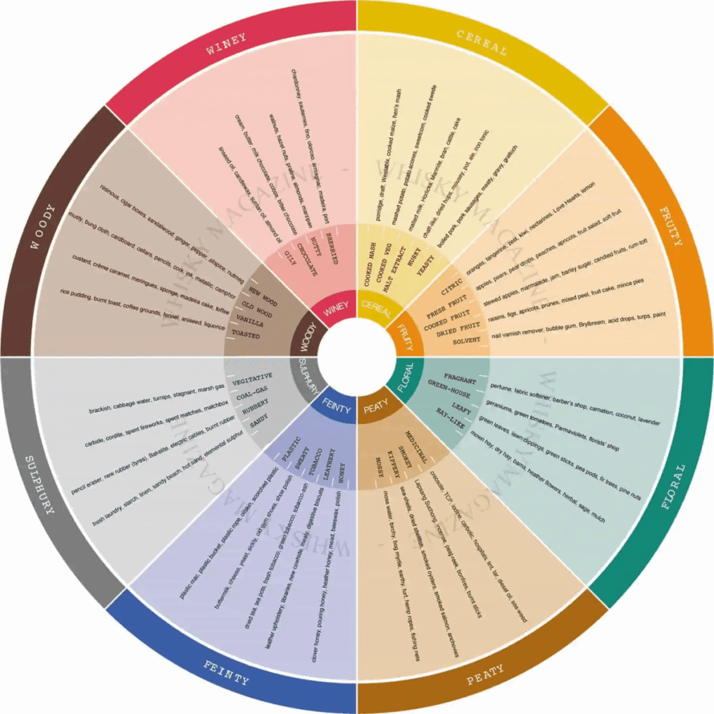A neves whisky szakíró saját tapasztalatai alapján alkotta meg az ízkereket.